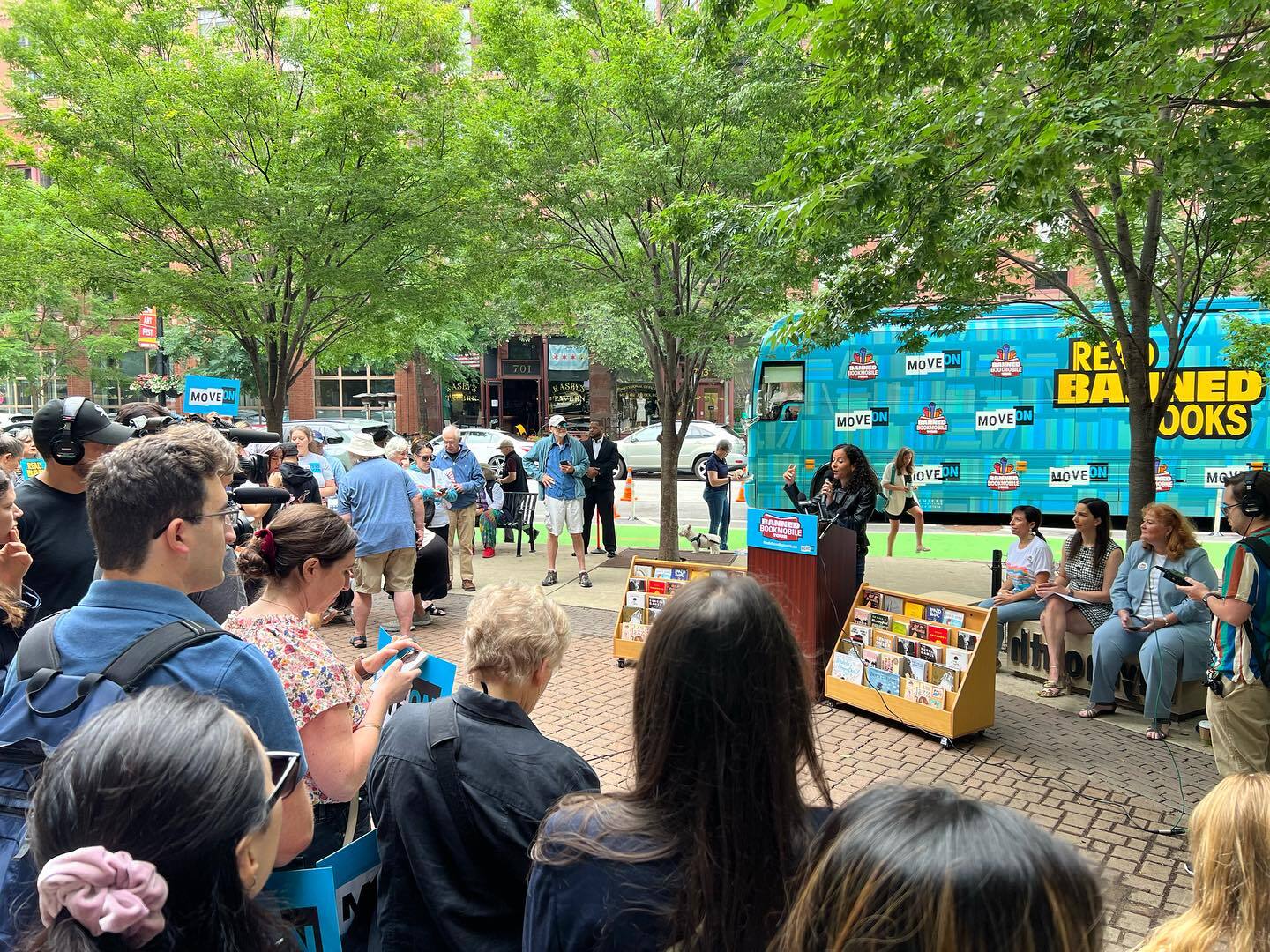 Chicago, I.L. – Yesterday, MoveOn Political Action’s first Banned Bookmobile multistate tour officially launched in Chicago, with nearly 100 attendees and MoveOn distributing hundreds of books during the event.